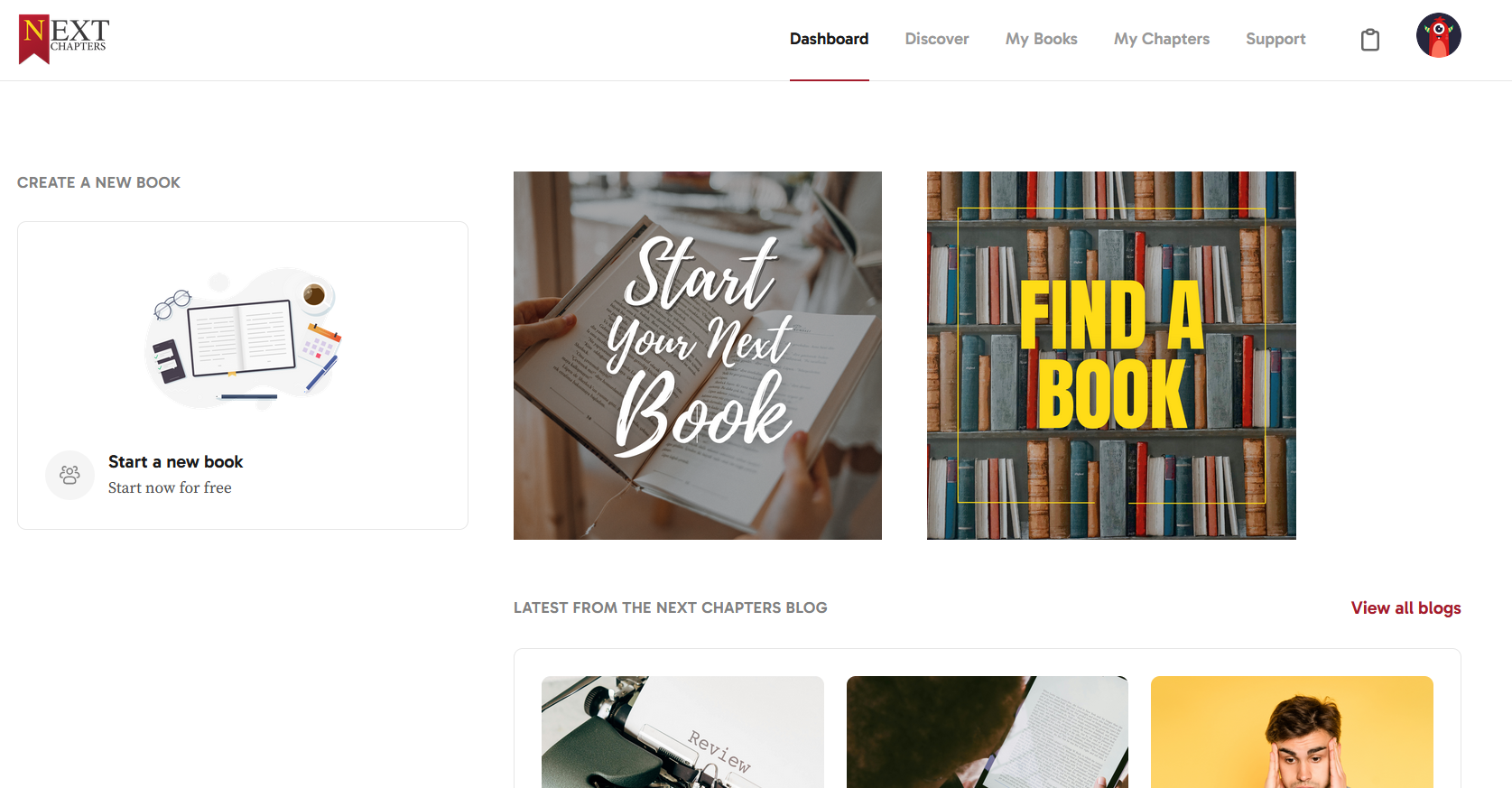 The dashboard is the central workspace in Next Chapters. It is where you return to pick up where you left off, see your books, and move to other parts of the platform.