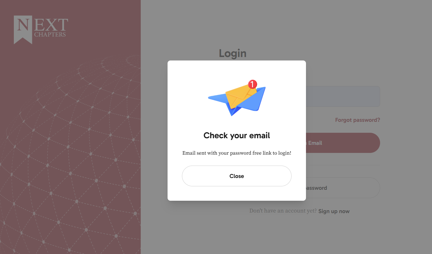 Next Chapters will send you a secure login link by email. Clicking this link will automatically sign you in and take you to your dashboard.