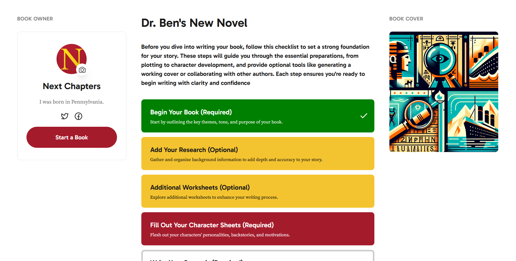 Your dashboard groups books based on your relationship to them so you can easily tell which projects you control, which you help guide, and which you are contributing to. You can view these same groupings at any time by selecting My Books from the main navigation.