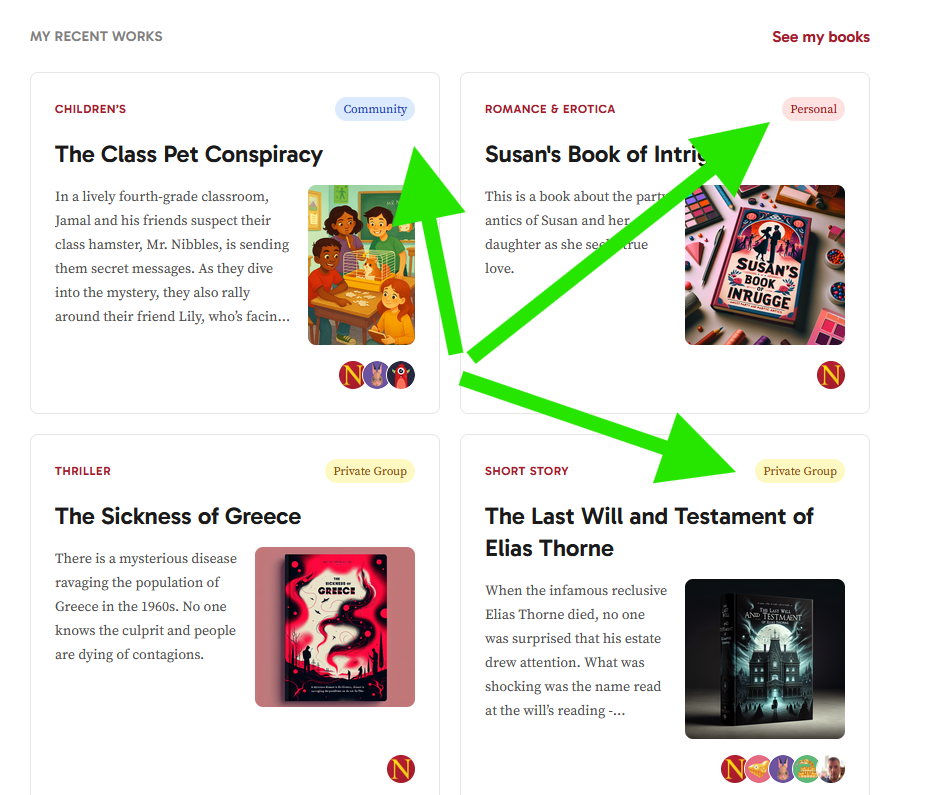 For private books, this is simple. For shared and community books, visibility is more structured, so collaboration remains organized.